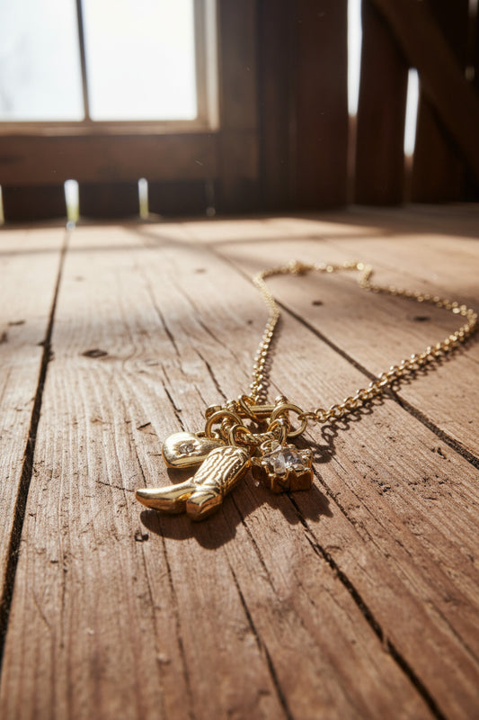 Western Cowboy Boot & Heart Charms Necklace