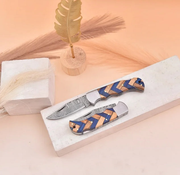6.5" Handmade Damascus Steel Pocket Knife