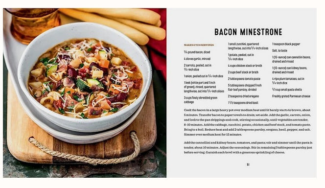 This cookbook may be small in size but it’s chock full of sixty five recipes using bacon, beans and beer as the star ingredient. You’ll find appetizers & snacks, soups & sandwiches, salads, sides and easy meals. Our favorites are the Bacon & Shrimp Po’ Boy and Bacon Mac & cheese.
