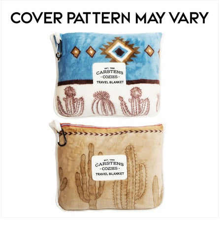 For comfortable travel, no matter how long or short your journey may be, take Carstens plush with you! These blankets pack neatly into a small travel sack that has a suitcase handle strap and a fabric loop with a carabiner for easy hands free carrying.